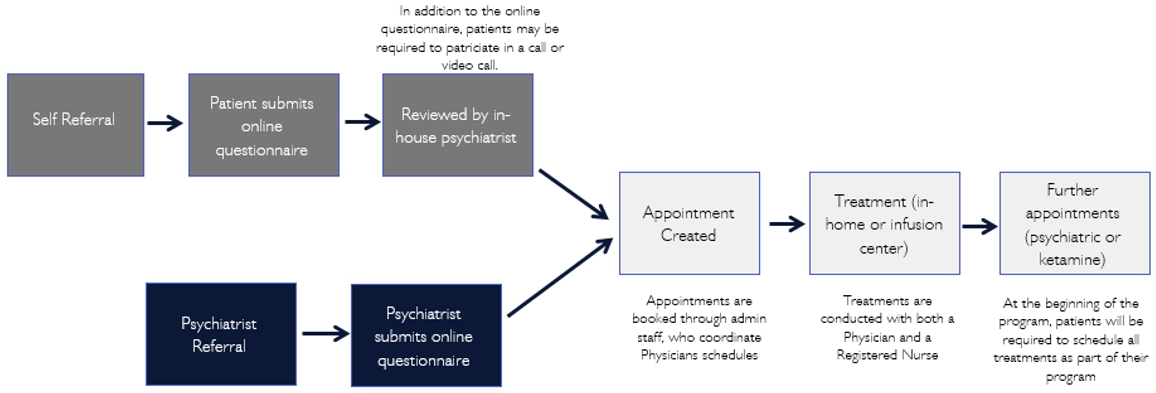 | ● | Partner with reputable and successful healthcare companies and clinics to provide and support the intravenous administration of ketamine to treat treatment-resistant depression; |