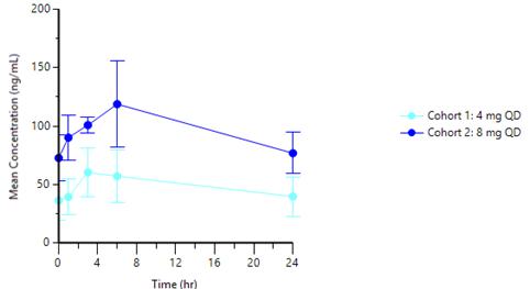 | ● | Cohort 2 (8mg tablet) has demonstrated: |