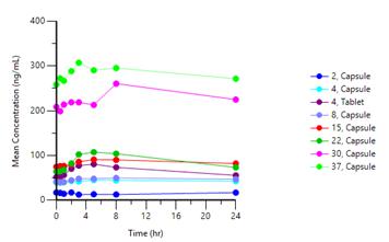 | - | After reviewing the safety data, the Safety Review Committee recommended to proceed to Cohort 8, 45mg capsule, without modification. |